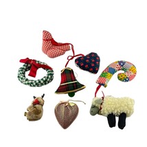 Handmade Fabric Christmas Ornament Lot of 8 Bird Lamb Heart Bell Reindeer Wreath