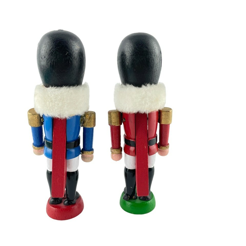 Christmas Toy Nutcracker Ornaments Set of 2 Hand Painted Wooden Decor Figures