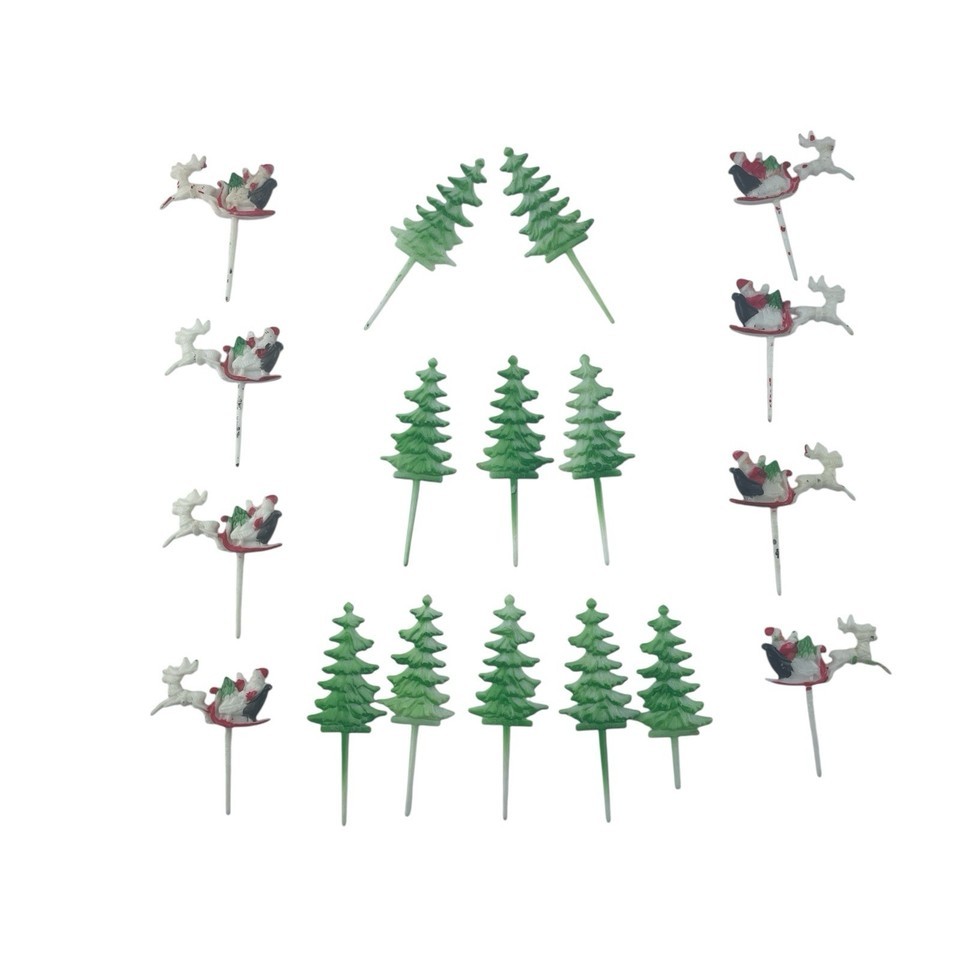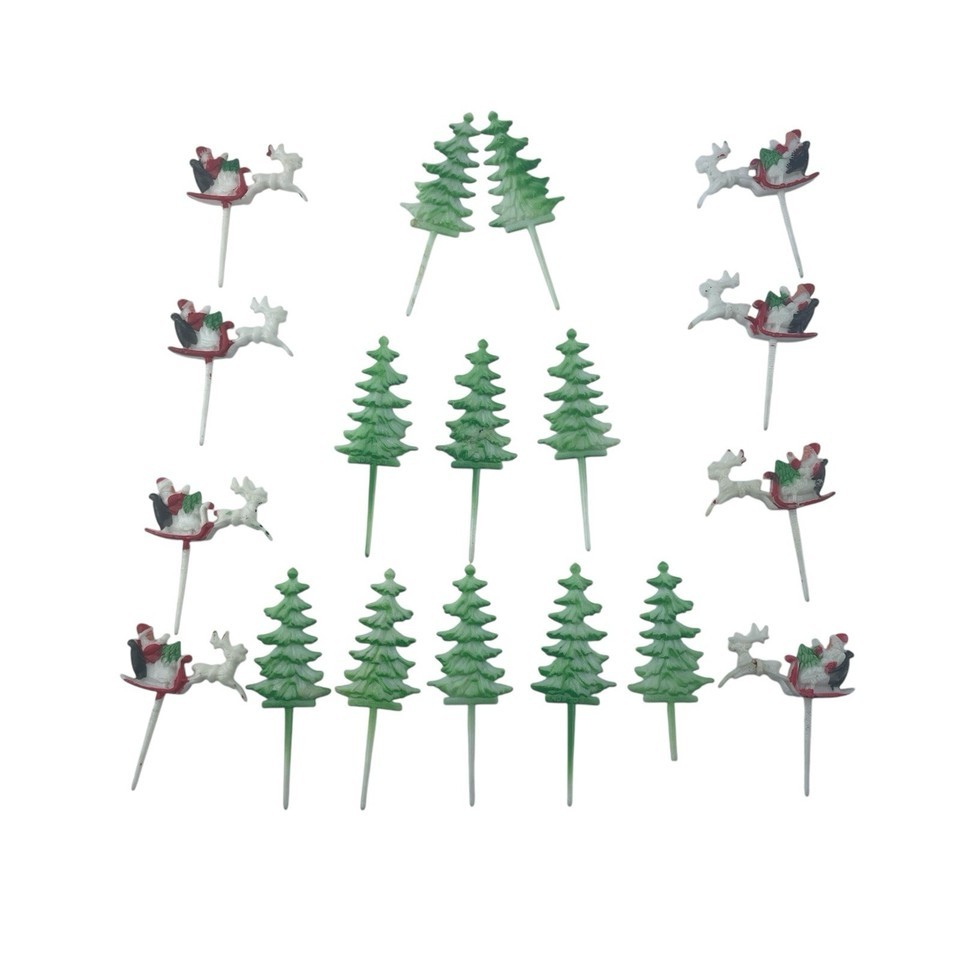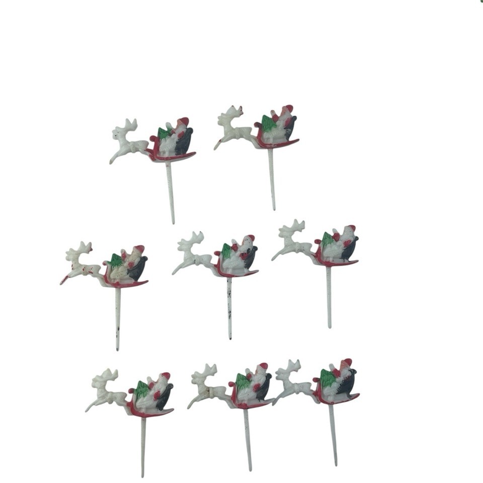 Christmas Picks Lot of 18 Tree and Santa in Sleigh Reindeer Wreath Food Decor