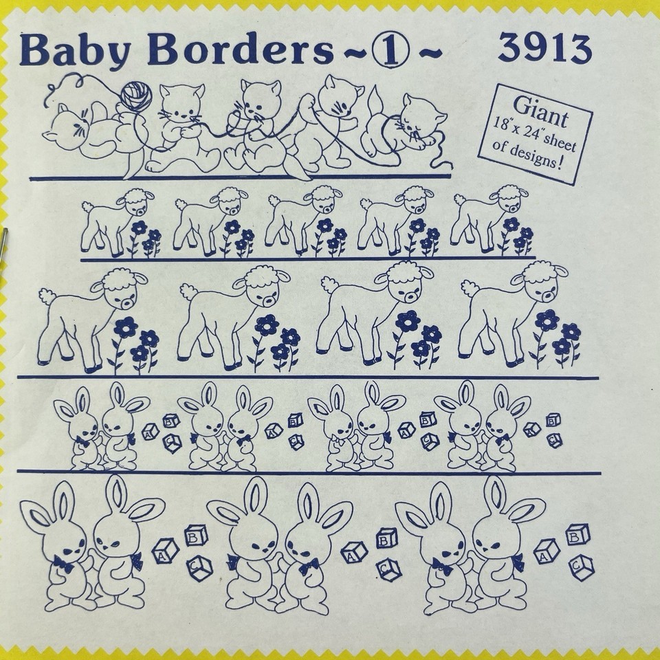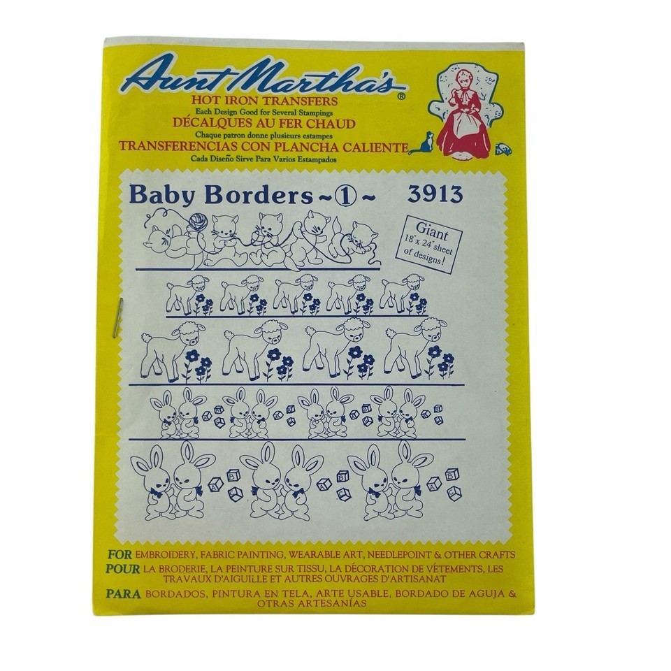 Aunt Martha's Hot Iron Transfers: Noah's Ark No. 3925 and Baby Borders-1 No 3913 are a vintage original transfers made in the United States.