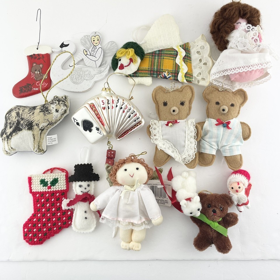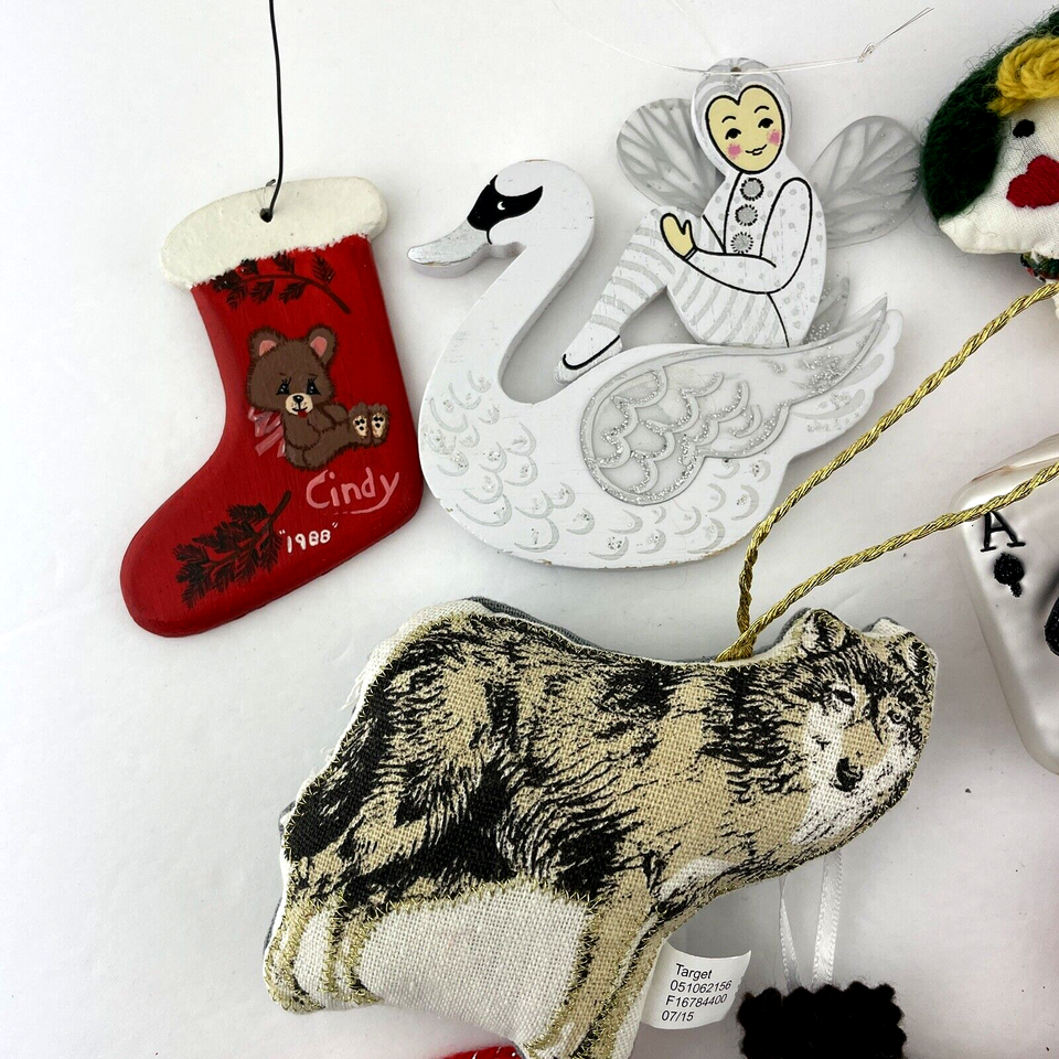 Christmas Ornament Lot of 14 Angel Swan Teddy Bear Gingerbread Home Made