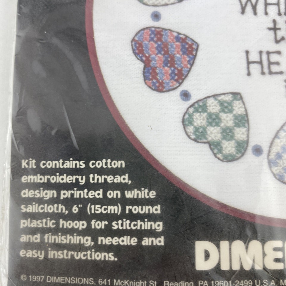 Dimensions Cross Stitch Home Is Where The Heart Is Beginner Level 6" Round 1997