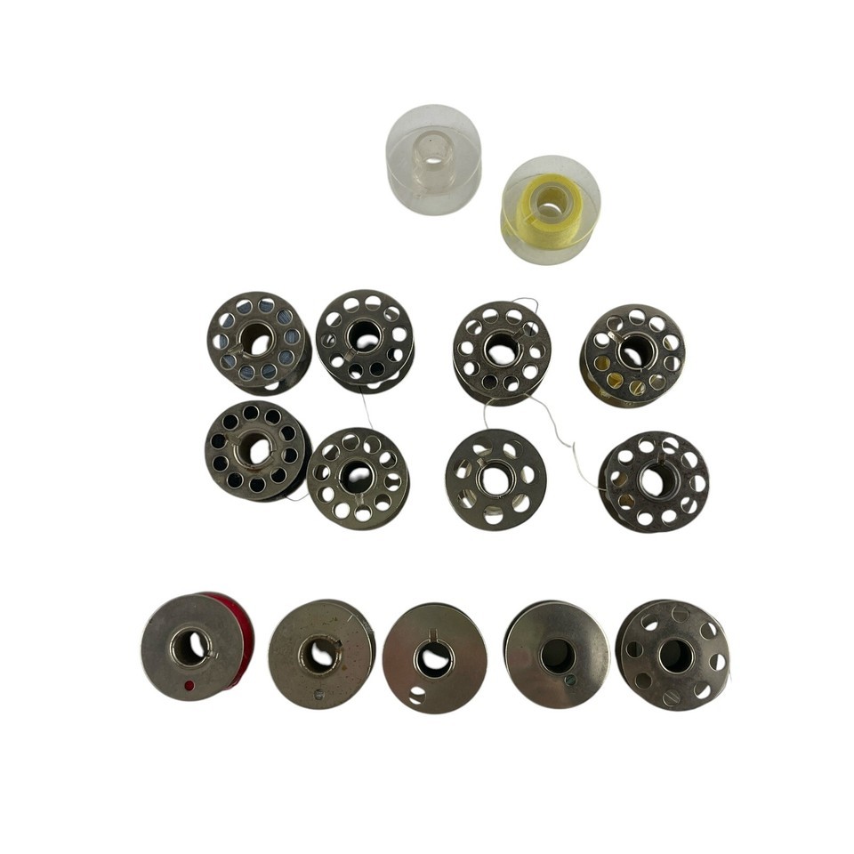 Sewing Machine Supply Lot of 15 Bobbins Metal and Plastic