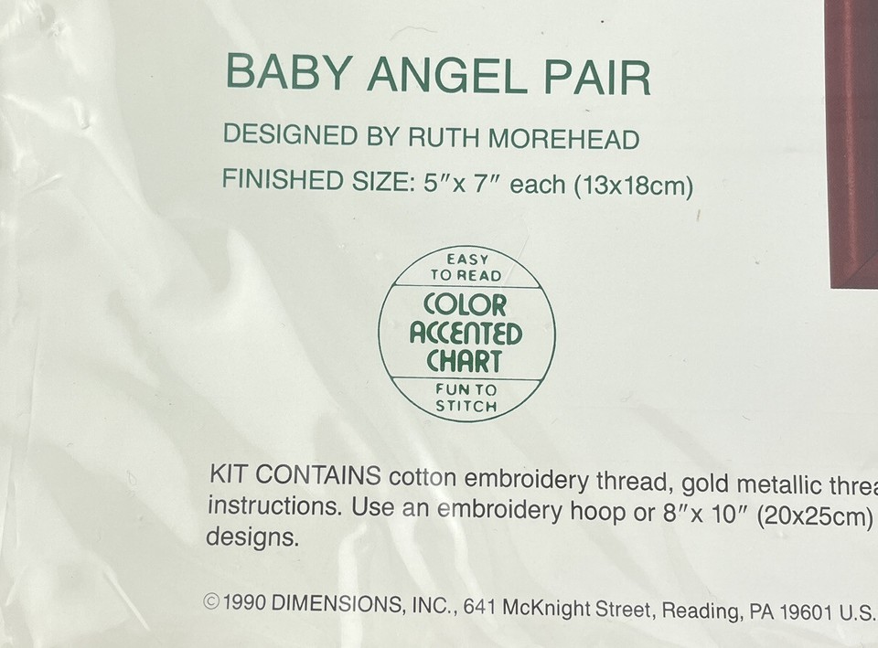 Sunset Counted Cross Stitch Christmas Baby Angel Pair by Ruth Morehead 1990