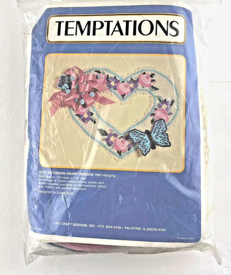 J and L Craft Temptations Needlepoint Victorian Heart Wreath 9127 Linda Ruck 80s