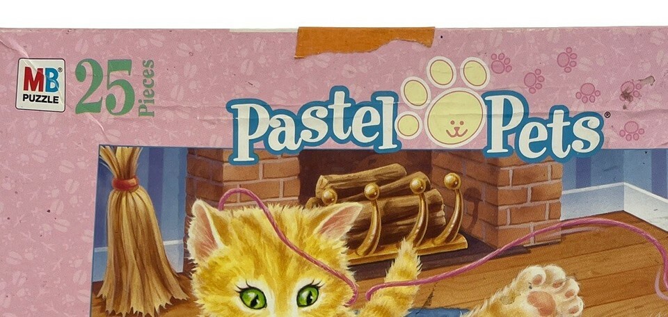 Vintage Milton Bradley Puzzle Pastel Pets 25 Pieces Ages 3+ Kittens Playing Yarn