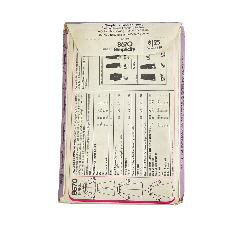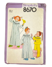 Simplicity Sewing Pattern Children's Robe Nightgown Pajamas No. 8670