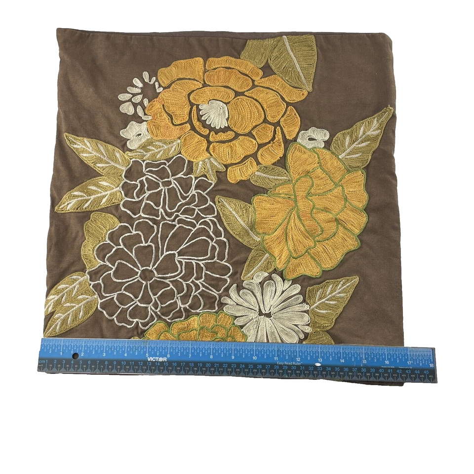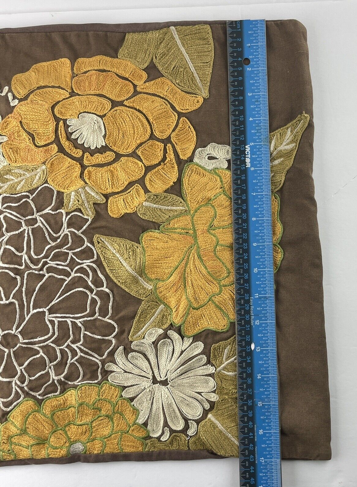 Pier 1 Embroidered Pillow Covers Pair of Mocha Brown with Orange Yellow Floral