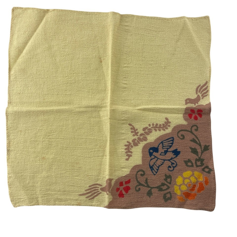 Six Vintage Dinner Napkins Beige w Bird Folk and 43 similar items