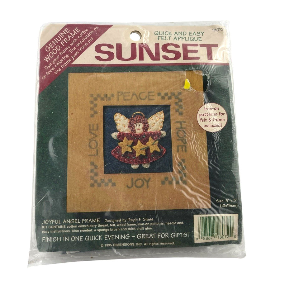 Sunset Joyful Felt Applique Christmas Angel Craft Kit w Wood Frame