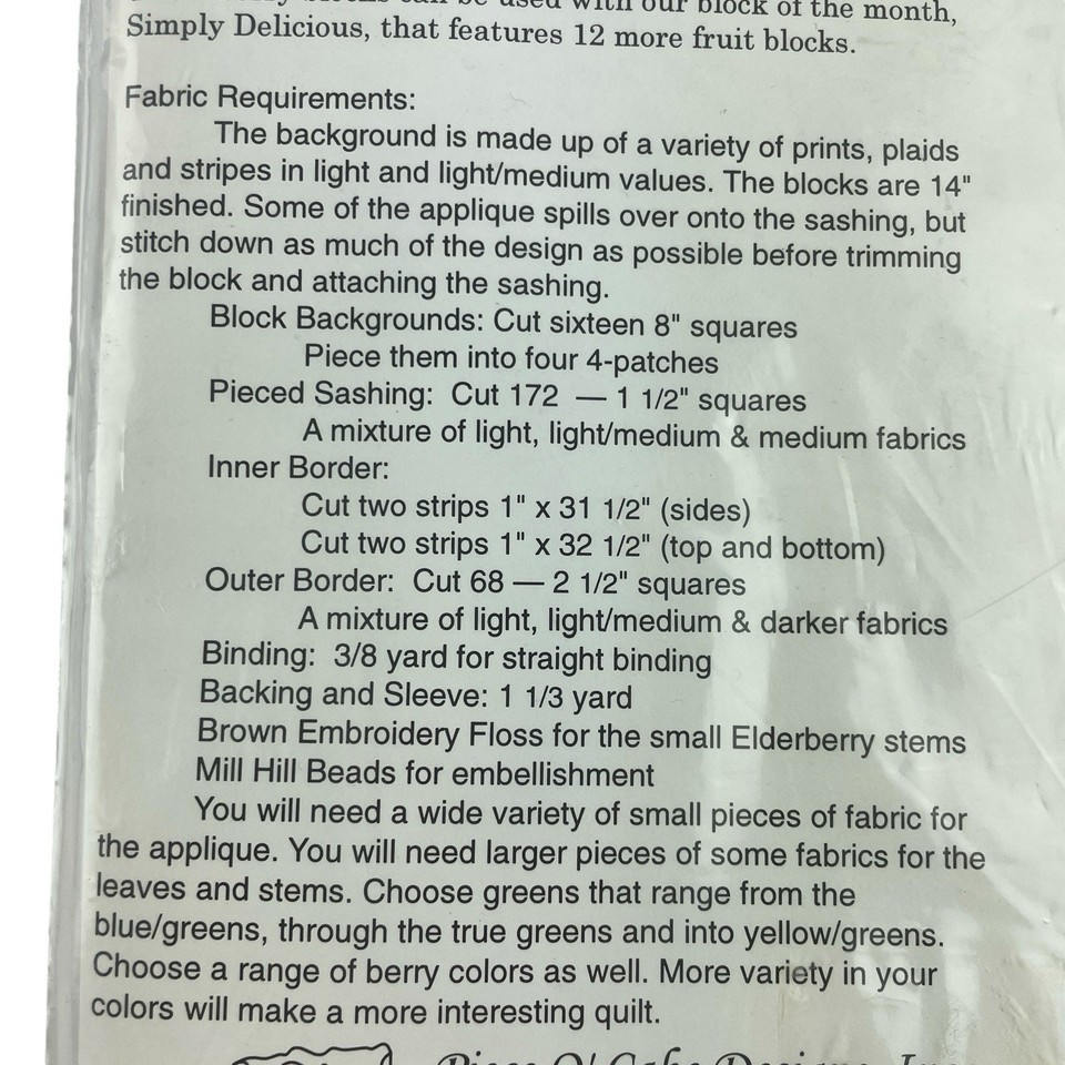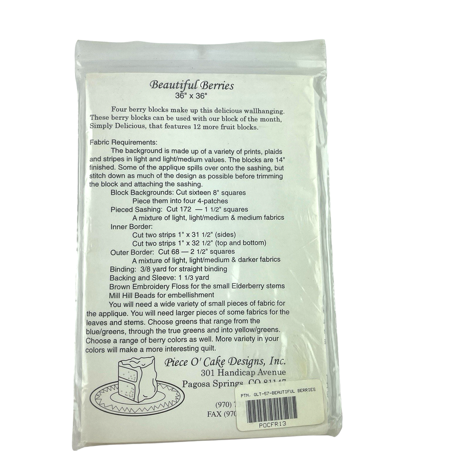 Piece O' Cake Wall Hanging PATTERN Beautiful Berries Applique Simply Delicious