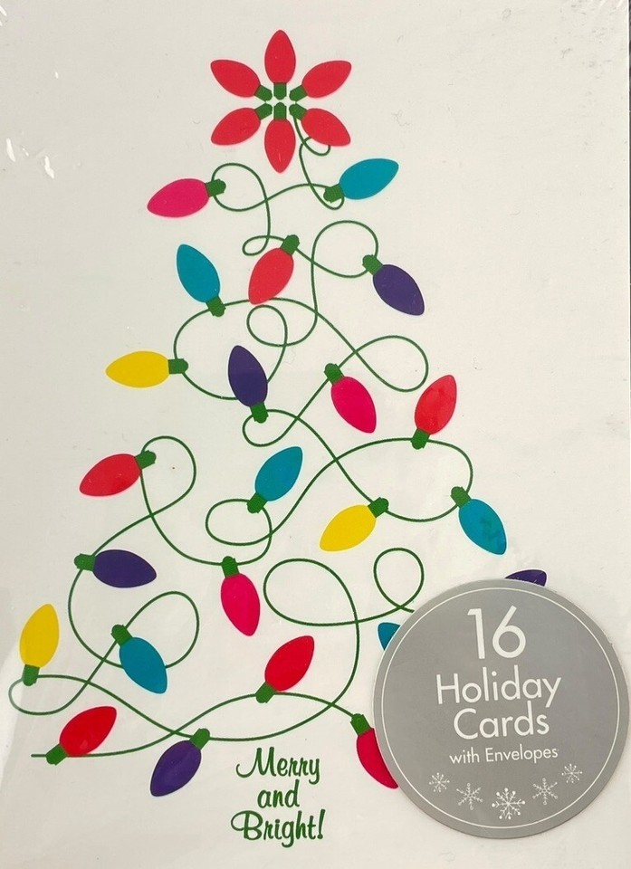 Christmas Holiday Cards Merry and Bright Tree Lights Graphic 16 w Envs
