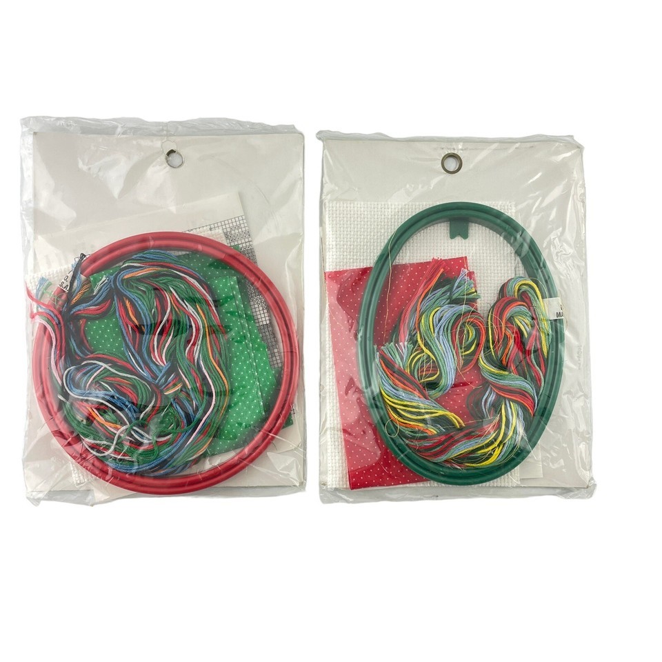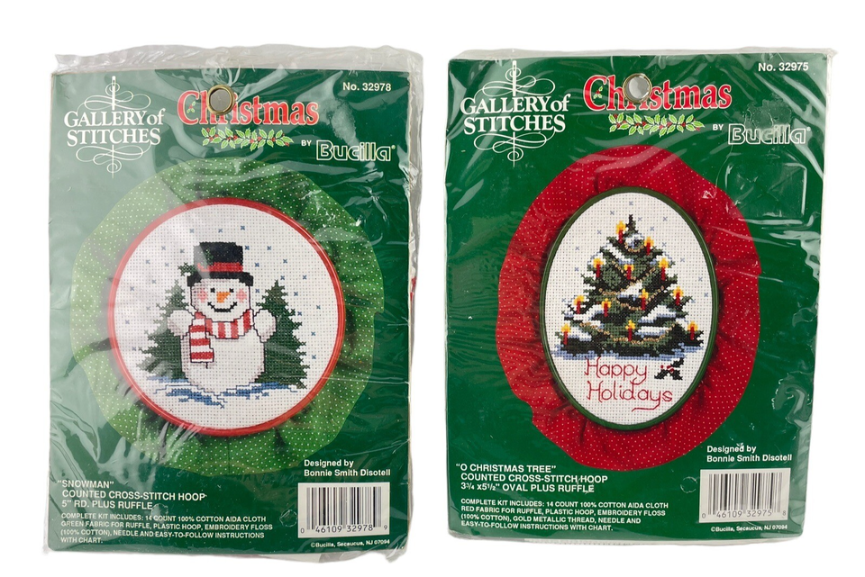 Bucilla Christmas Counted Cross Stitch Tree Snowman w/Hoop Lot of 2 32975 32978