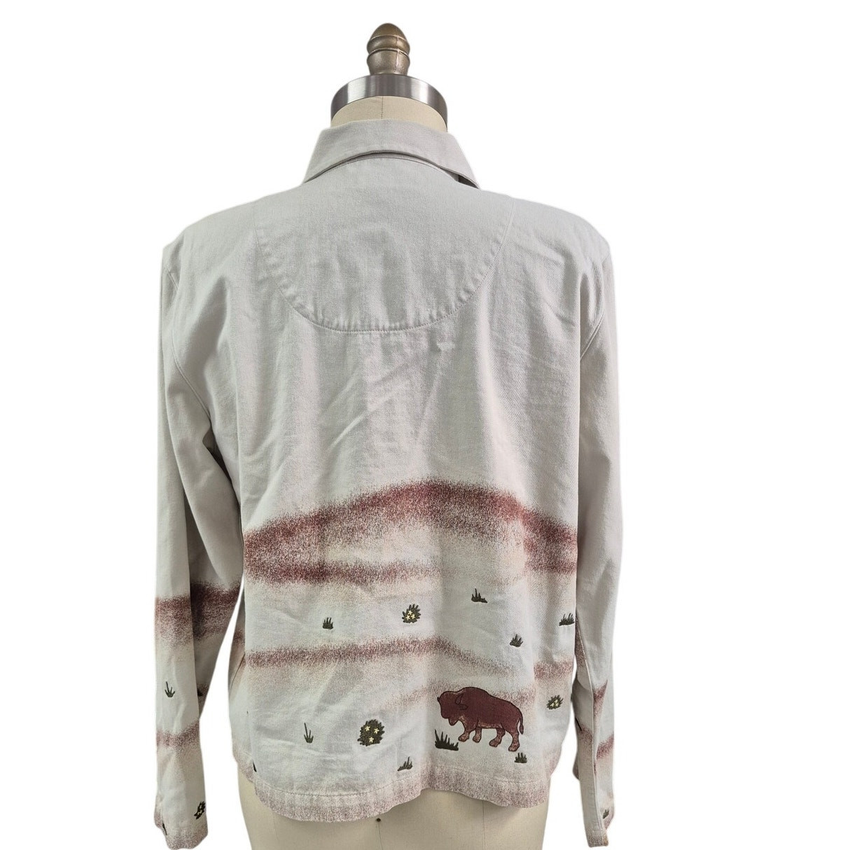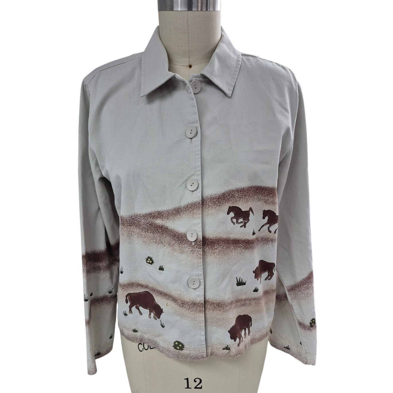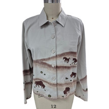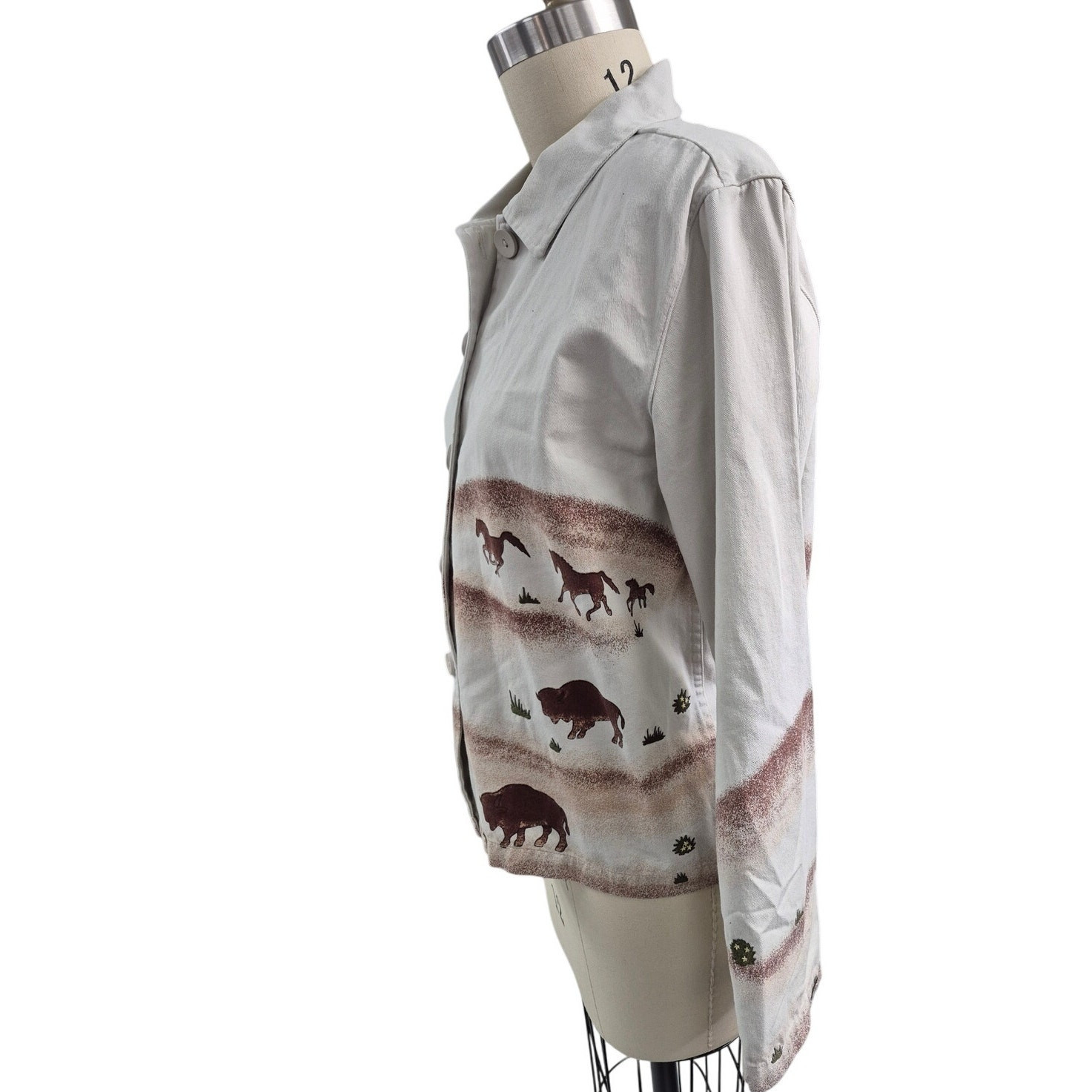 Y2K 2002 Christopher & Banks Khaki Jacket Plains Themed Horse/Buffalo Women L