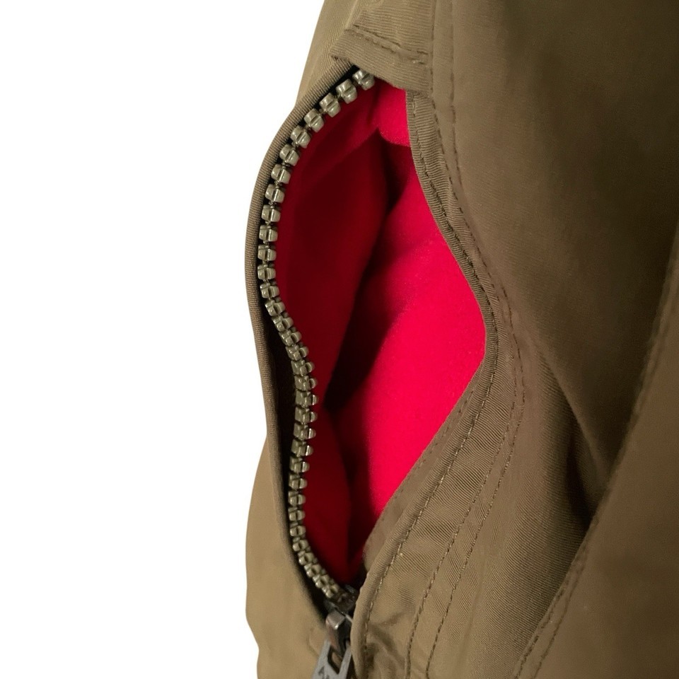 One hidden zipper chest pocket with A F 1892 embroidered in red.