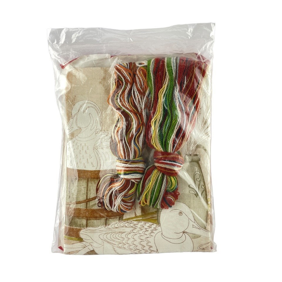 Decoy Ducks crewel kit features a pair of duck decoys and cattails.
