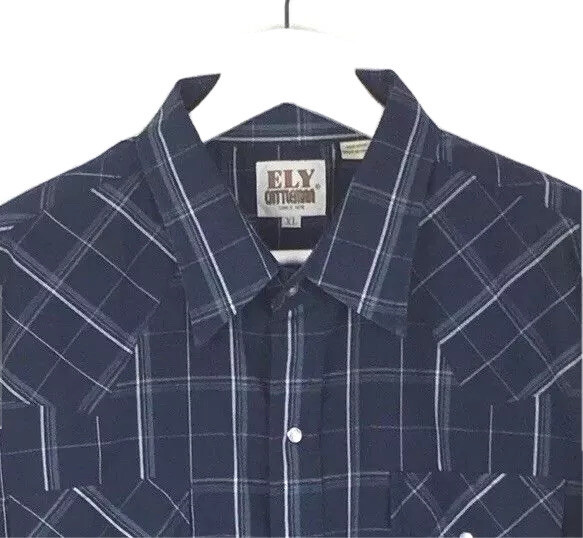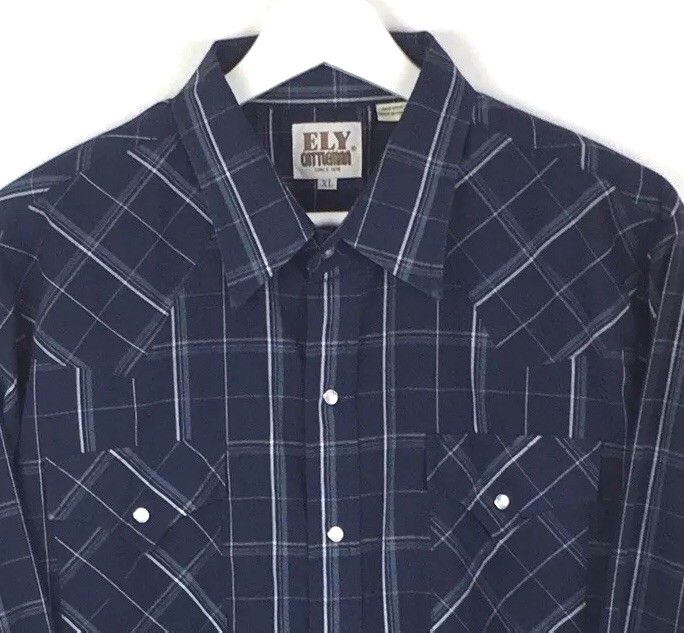 Ely Cattleman Western Shirt Mens XL Long Sleeve Pearl Snap Blue