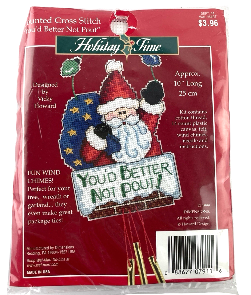 Dimensions Cross Stitch You'd Better Not Pout Wind Chime Santa 7911