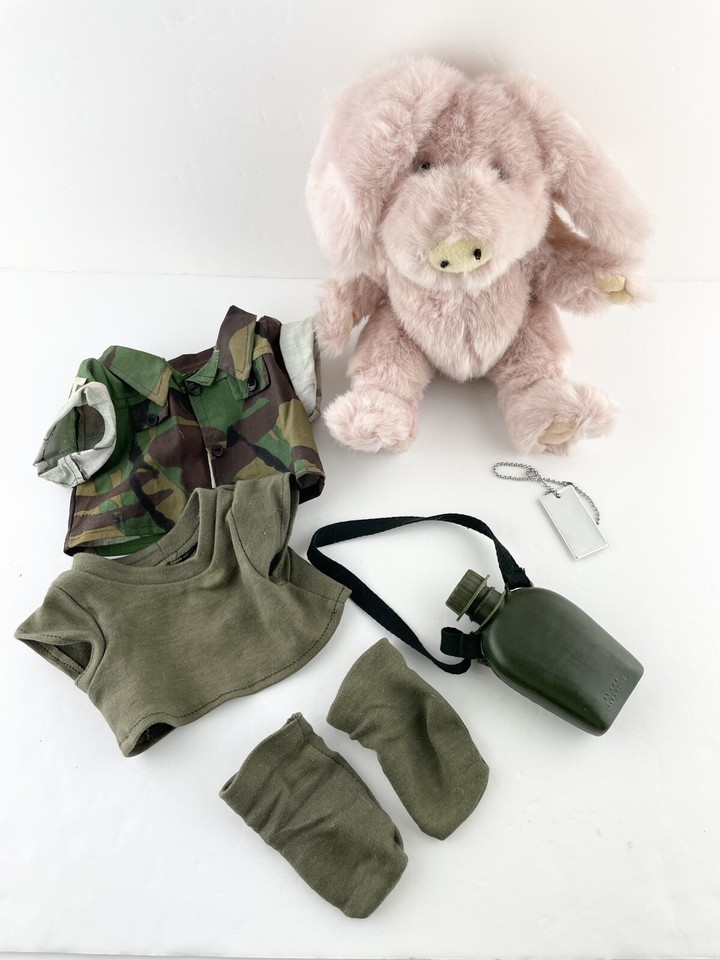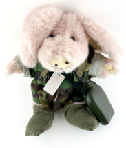 The Boyds Collection Plush 1985 Pink Pig in Camouflage Shirt w Canteen Dog Tags
