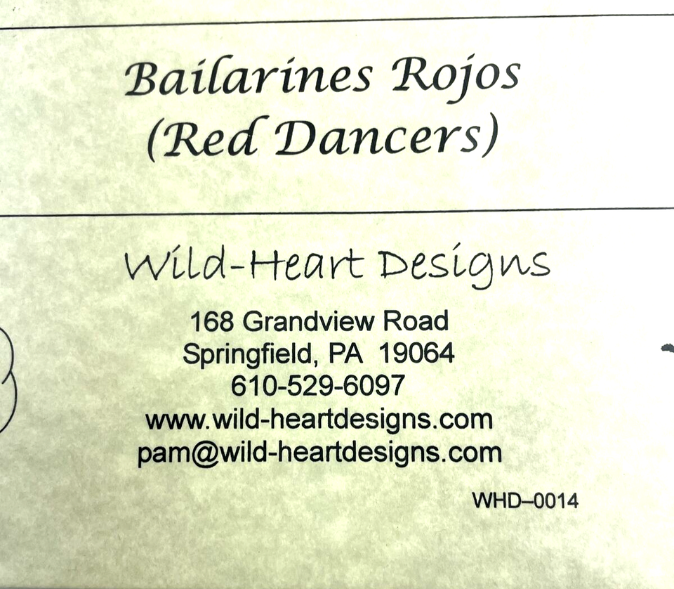 Wild Heart Designs Needlepoint PATTERN Balarines Rojos Red Dancers 12 x 12 in.