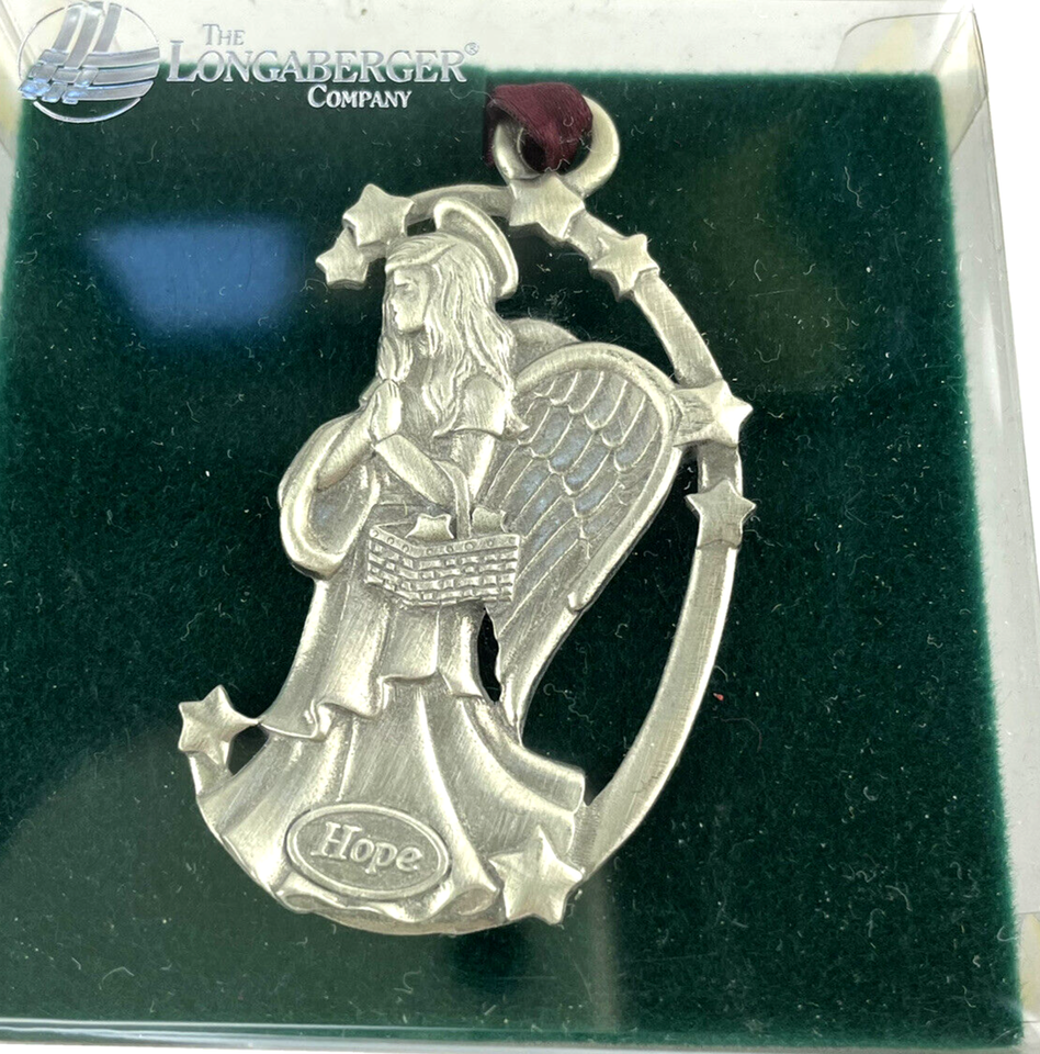 Longaberger Pewter Angel Basket Ornament HOPE Christmas 1998