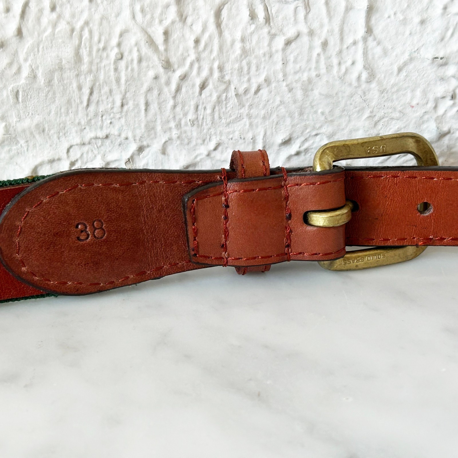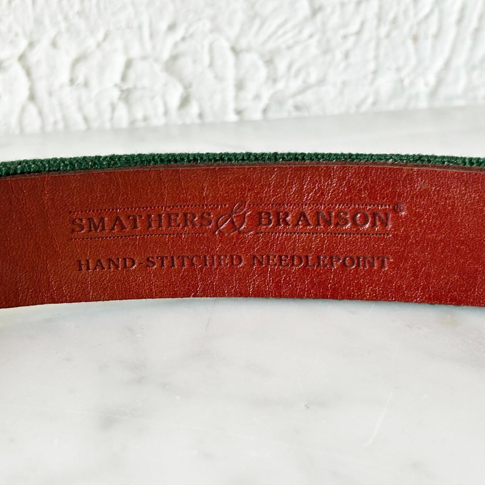 Masters Needlepoint Belt Smathers and Branson Green/Brown Leather-Men's Size 38
