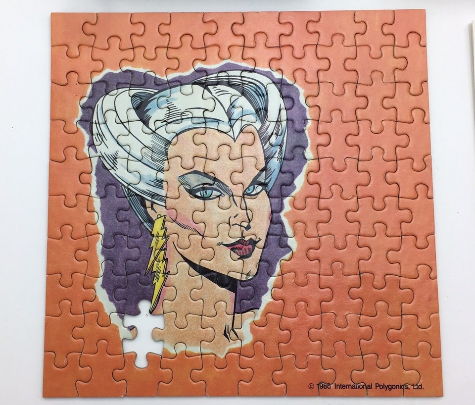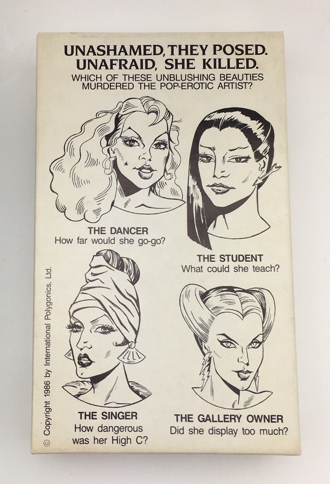Fabulous 80s comic book style artwork by Nicky Zann adorns this puzzle box. Puzzle is missing one piece. Don't look at the last few pics unless you want to know who the killer is.
