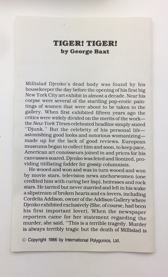 International Polygonics Ltd. Tiger! Tiger! George Baxt Mystery Puzzle