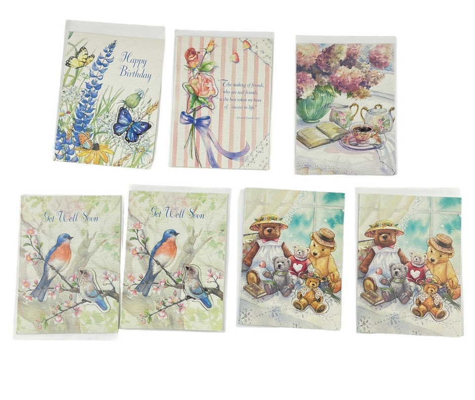 Vintage Greeting Cards + Fridge Magnet Lot of 6 Birthday Get Well Friends Bear