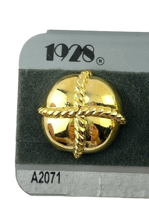 Vintage 1928 Clip Earrings Gold Tone Dome Shape w Raised Cross 1" A2071