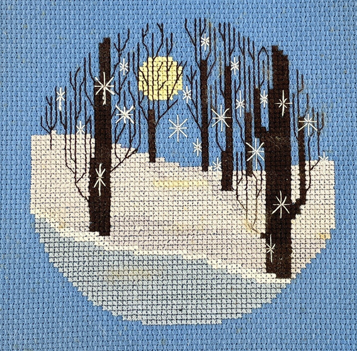 Finished Cross Stitch Moonlit Snowy Winter and 44 similar items