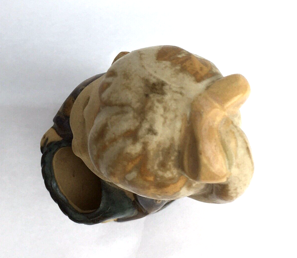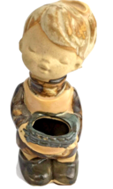 Measures 4.5 inches tall and 1.5 inches wide and deep. Basket has approximately 1 x .5 inch oval opening that can hold dried flowers, tooth picks or other small items. Colors are muted beiges, browns and gray. Portions of the figurine are unglazed. Made in Japan. Please note color shades can vary depending upon the calibrations of the viewing device.