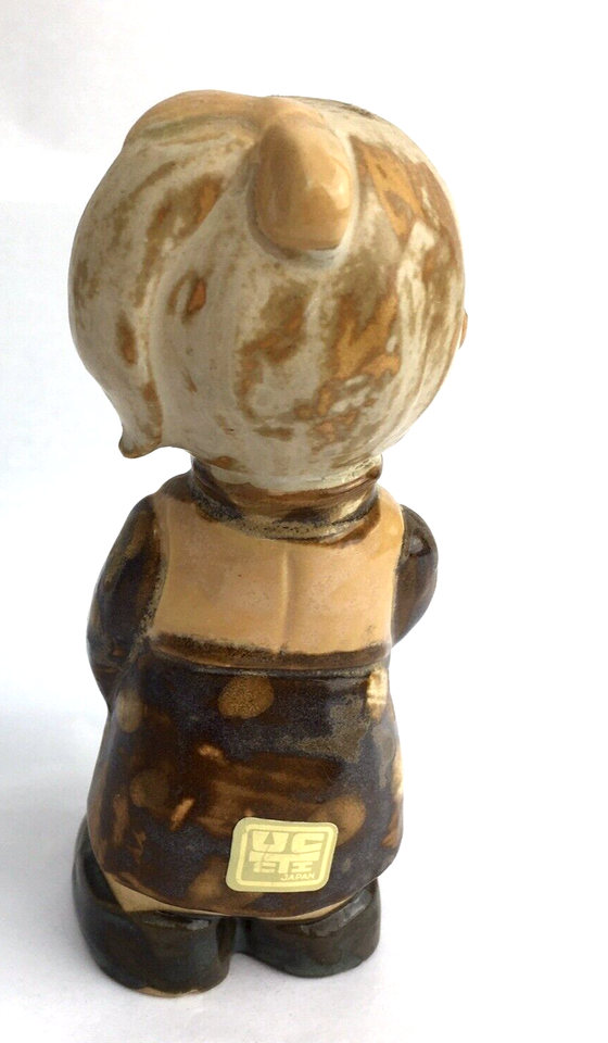 UCTCI Stoneware Figurine Girl Carrying Basket Japan Glazed and Unglazed