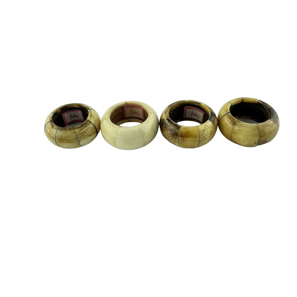 Audrey Napkin Rings Carved Soap Stone on Wood Base Brown Cream Set of 4