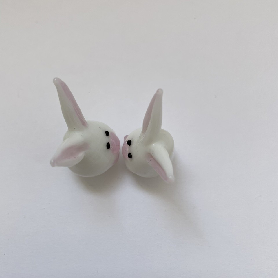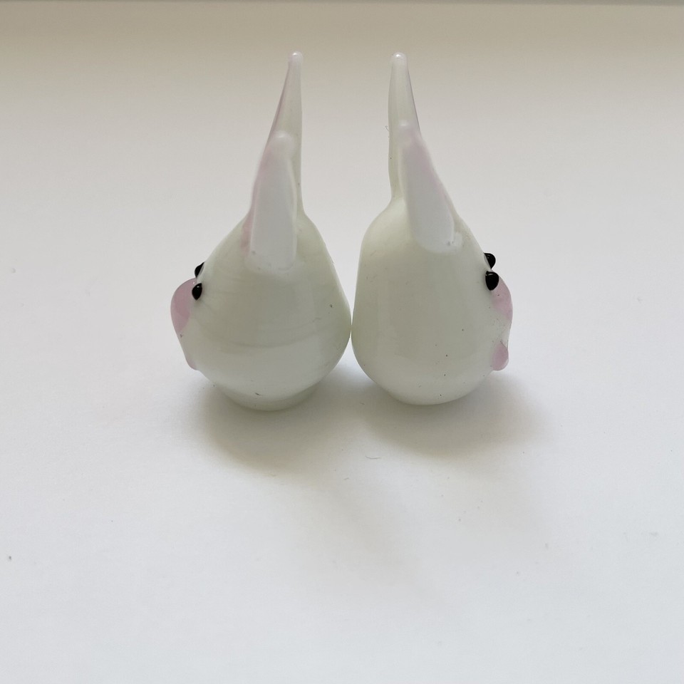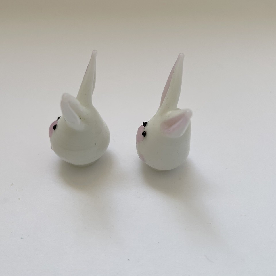 Bunny Face Figurines Easter Decor White Glass Pink Heart Shaped Nose