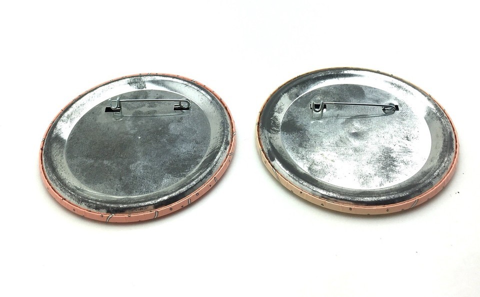 Each measures 3" in diameter with a safety pin back.