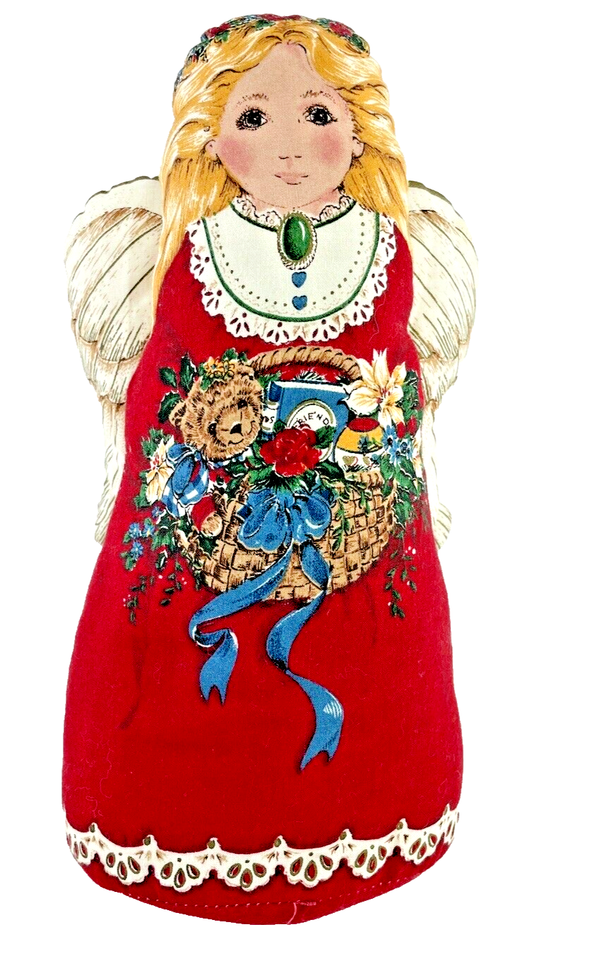 Handmade Angel Stuffed Plush Blond Basket Teddy Bear Red Green Gold