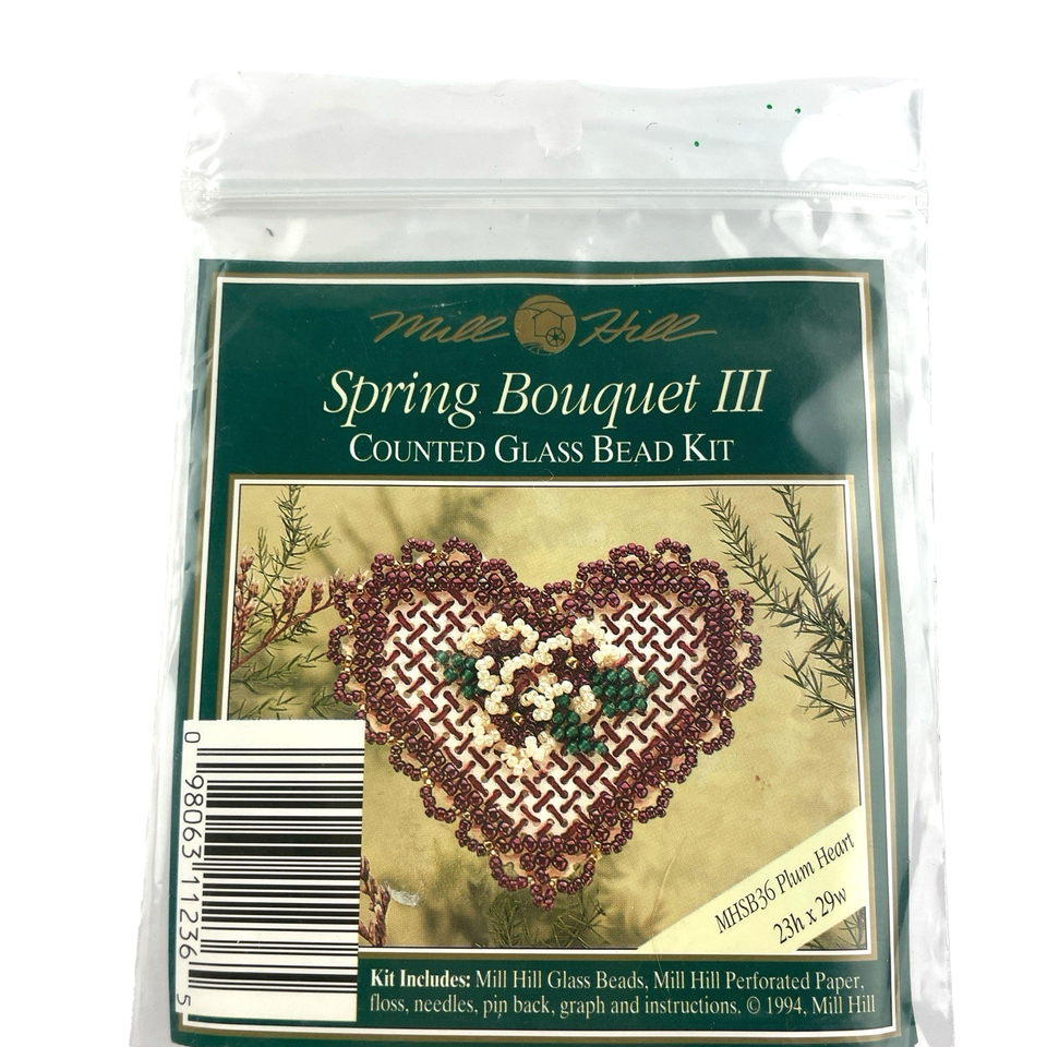 The Mill Hill Spring Bouquet III PLUM HEART Counted Glass Bead Pin Kit is a charming and intricate kit perfect for craft enthusiasts. This kit includes all the necessary materials and instructions to create a beautiful glass bead pin featuring a floral heart. Great for Valentine's Day!