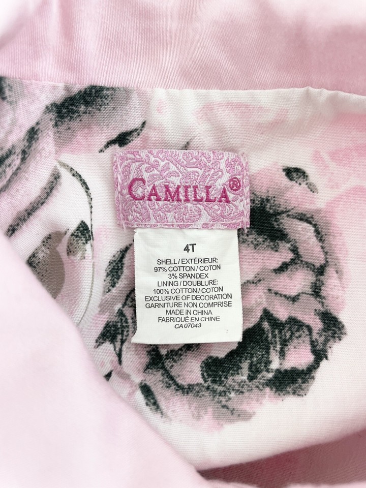 Camilla Kids Coat Girls 4T Pink Double Breasted Ruffle Cuff Floral Rose Lining