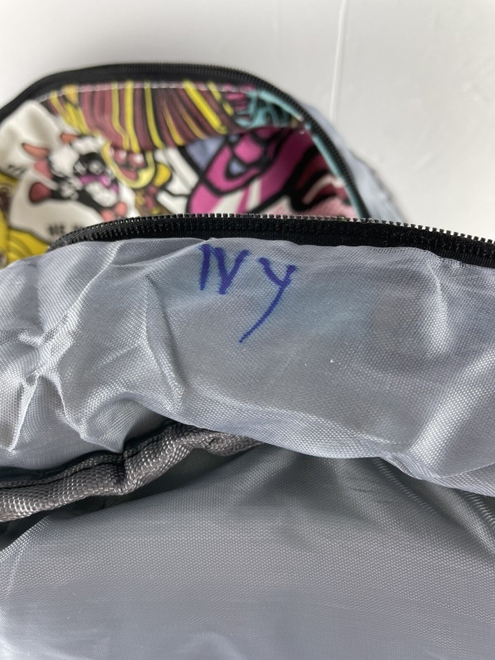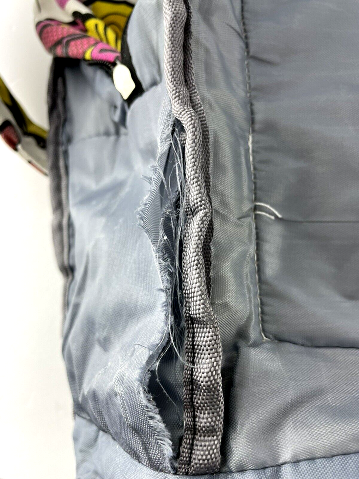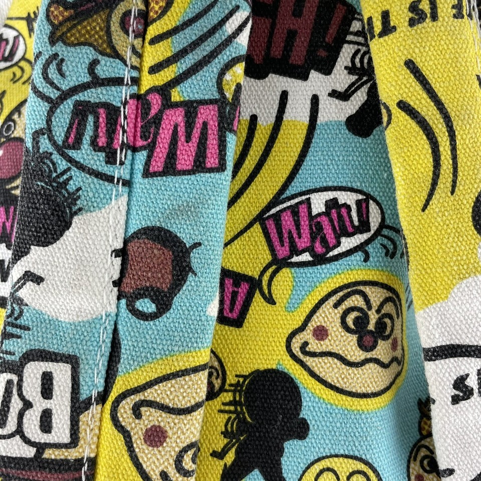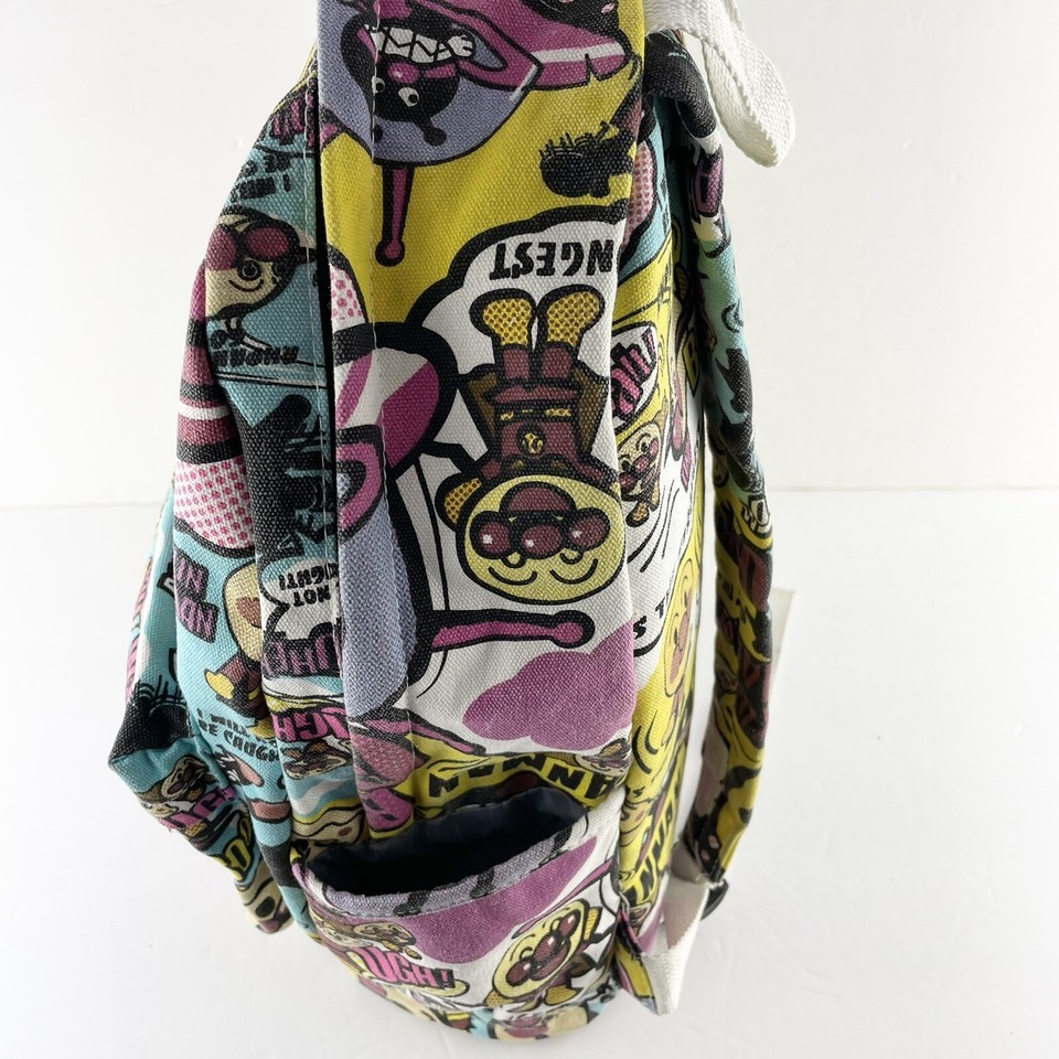 Baikinman was born in 1988 and showed up on the Anpanman Anime Series first episode on Oct. 3,1988. He is the bad guy who proclaims his mission "I was born to defeat you, Anpanman!" This sturdy canvas backpack is in fairly good condition with a few marks and two tears in the stitching inside near the bottom. The tears are on the inner lining only. Backpack features a front zip pocket, water bottle holders on either side and a clean, roomy interior with a cushioned pocket for a laptop or other electronics.