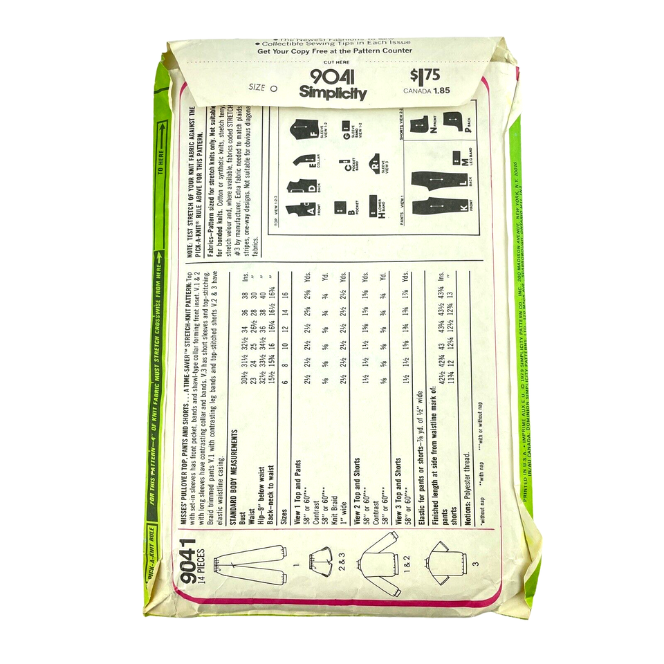Simplicity Sewing Pattern 9041 Stretchy Track Suit Tennis Outfit Vintage 1979