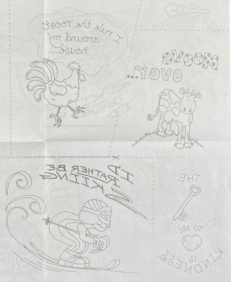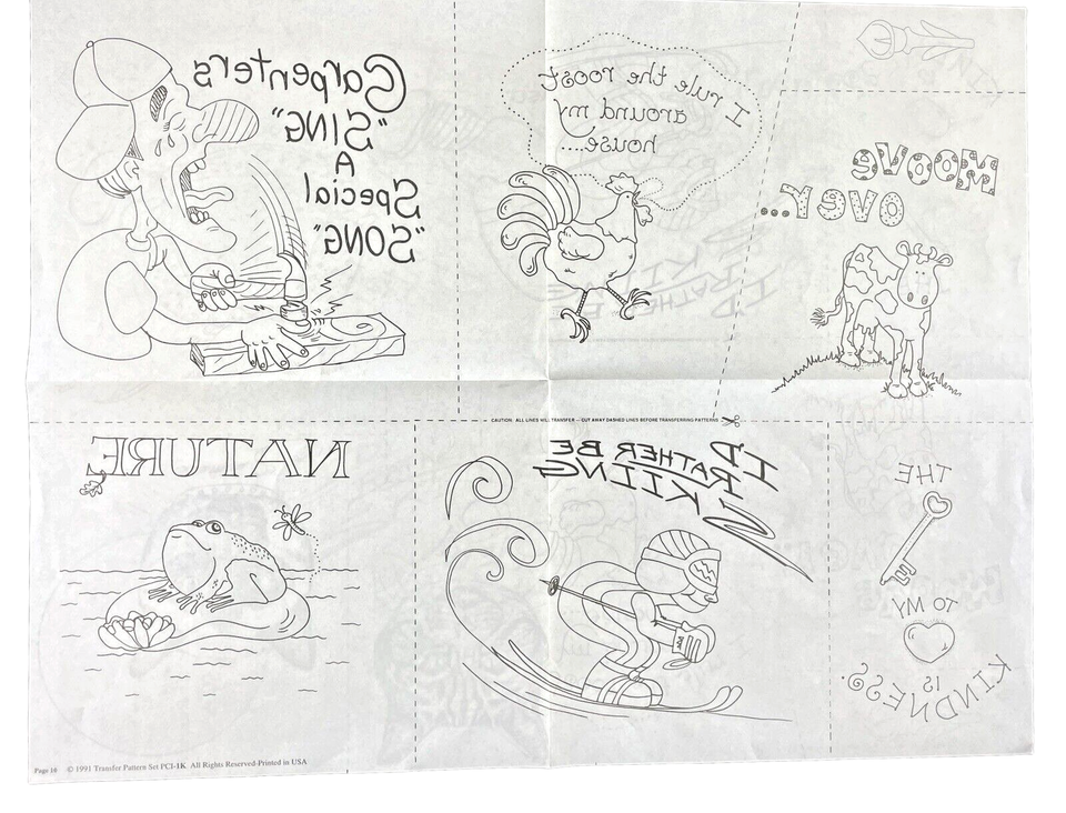 FC&A Iron On Transfer Pattern Carpenter Rooster Frog Cows Skier Funny Sayings