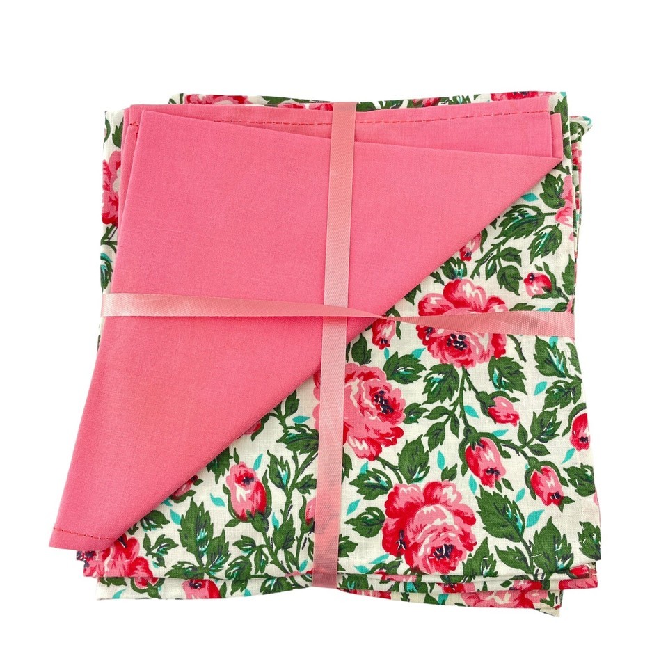 Vintage Handmade Tea Napkins Pink Rose Floral
