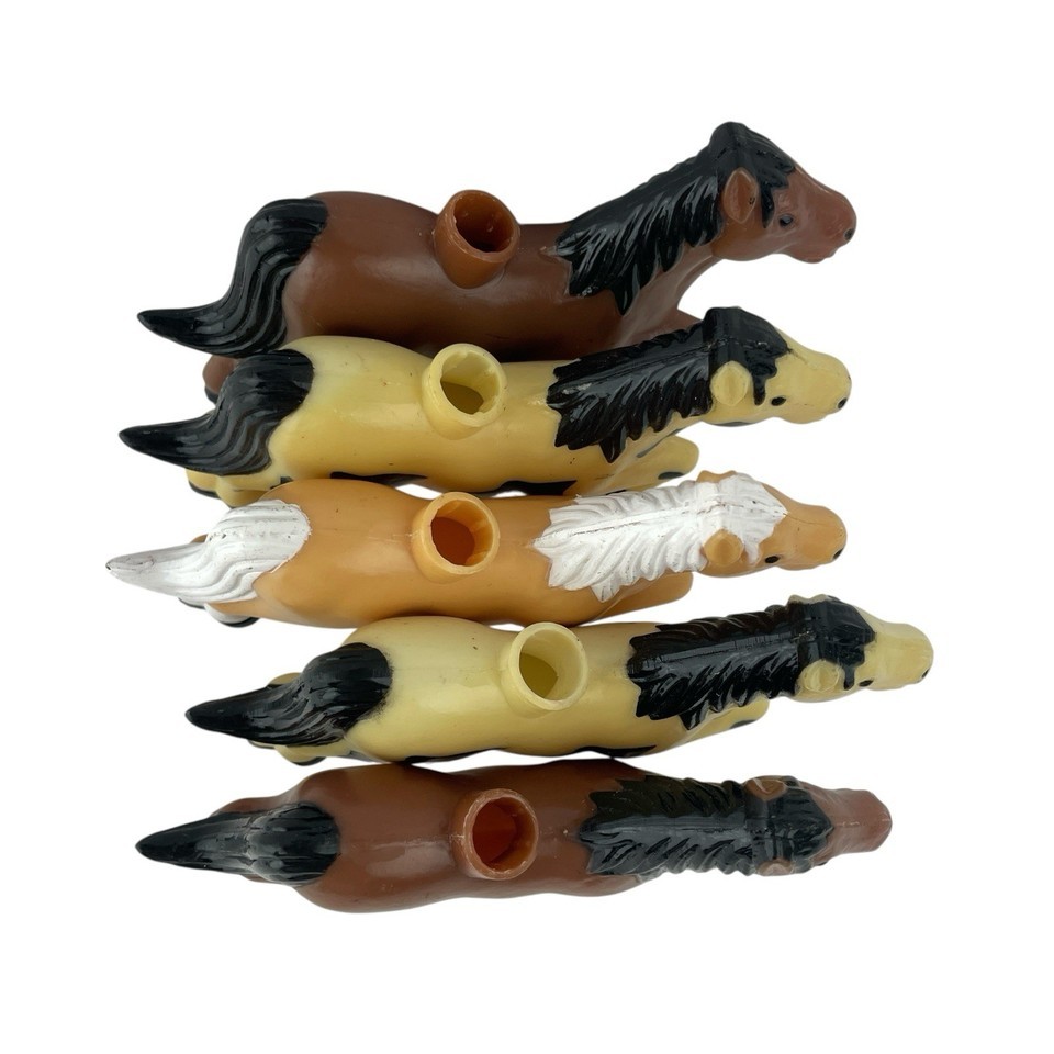 This lot of 5 Vintage Horse String Light Covers is a charming addition to any indoor space, perfect for all occasions. Each cover features a Western horse shape in durable plastic material. With a nostalgic touch from the 1950s era, these novelty light covers add a unique flair to your holiday decor or collectibles display. Colors of horses include gold, brown and white with black patches.