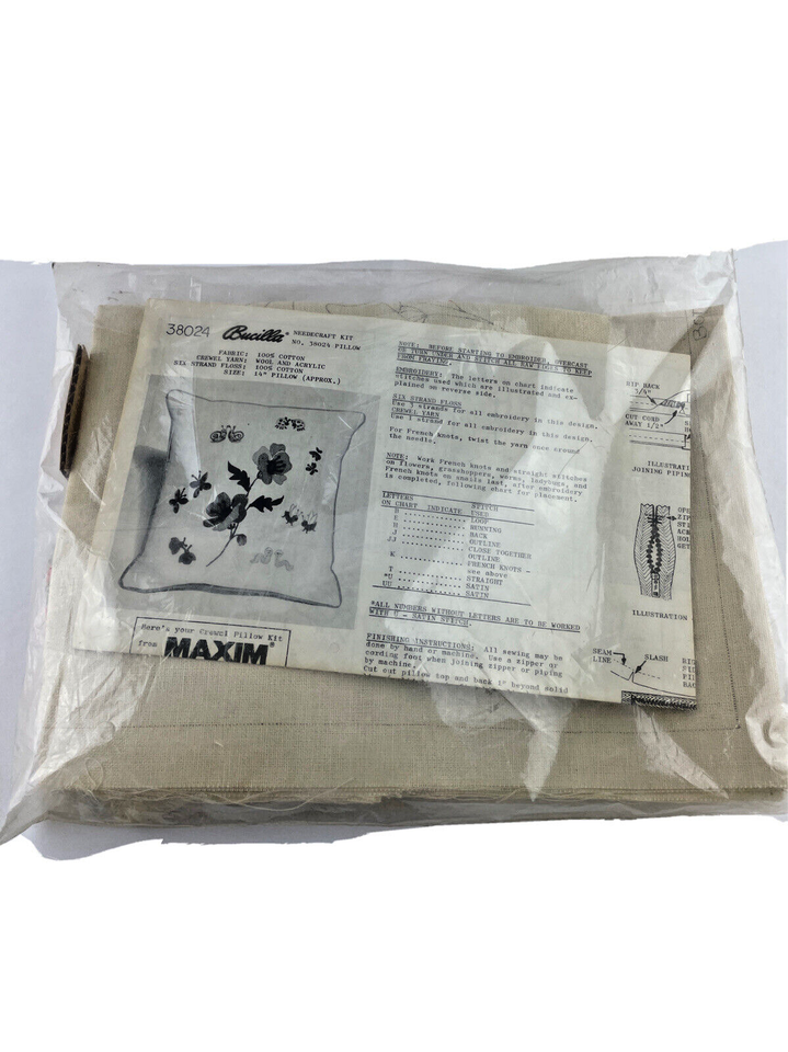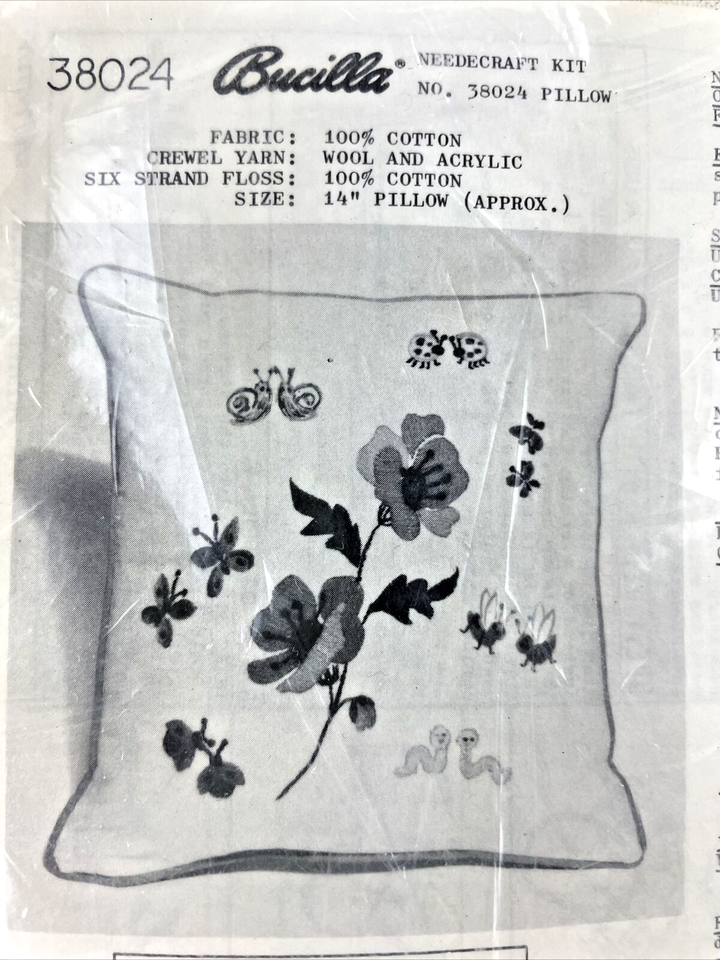 Bucilla Crewel Pillow Cover Floral Needlecraft Kit 38024 14 x 14 inch