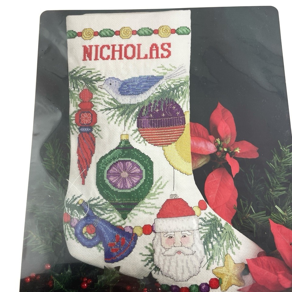 Designs 4 Needle Counted Cross Stitch Christmas Stocking ANTIQUE ORNAMENTS 1975