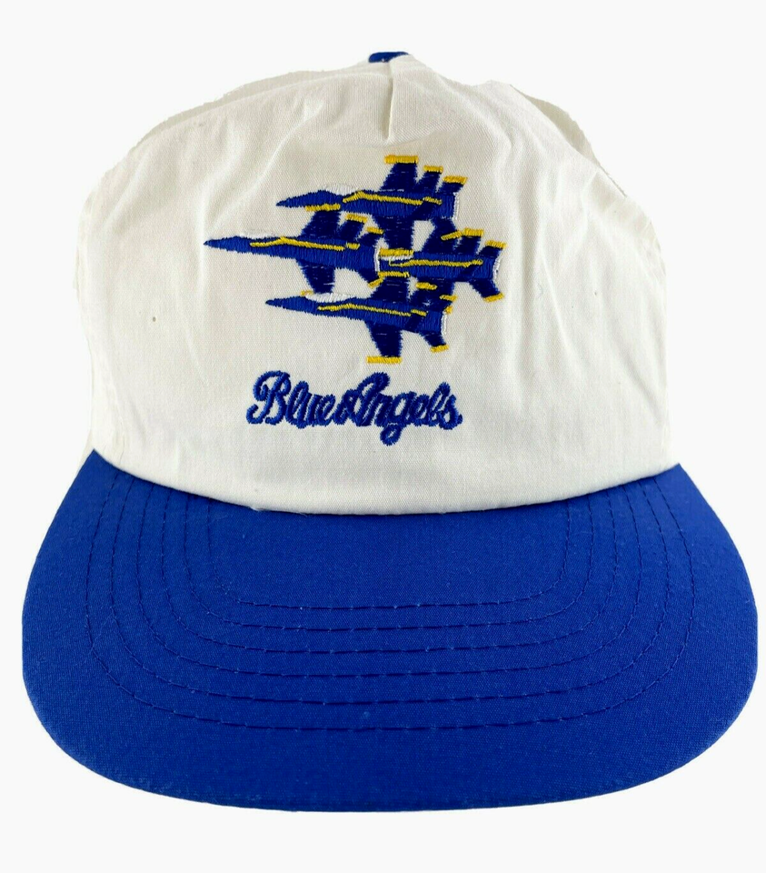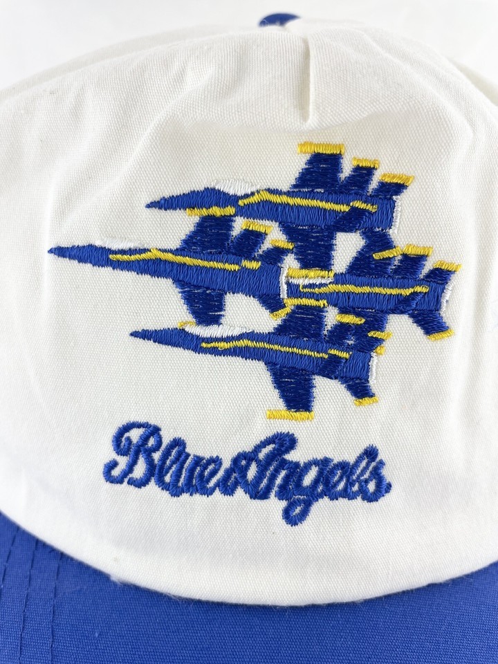 Blue Angels Fighter Jets Embroidered on White Snapback with Blue Bill