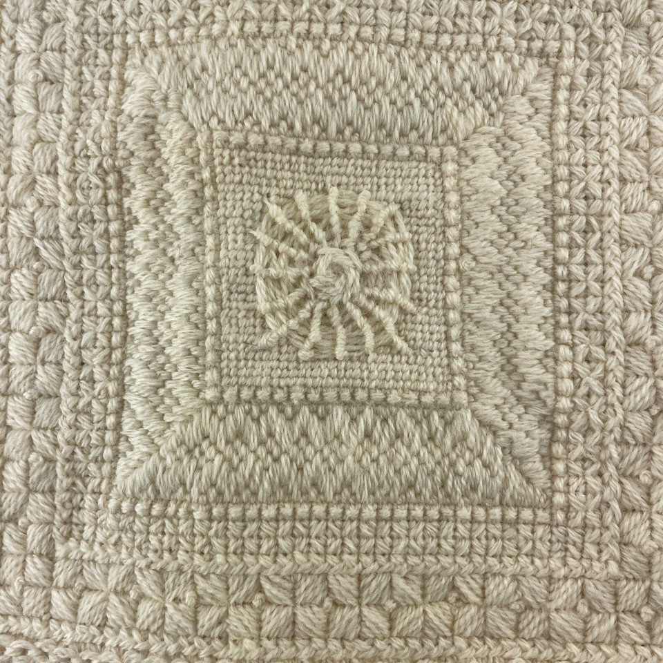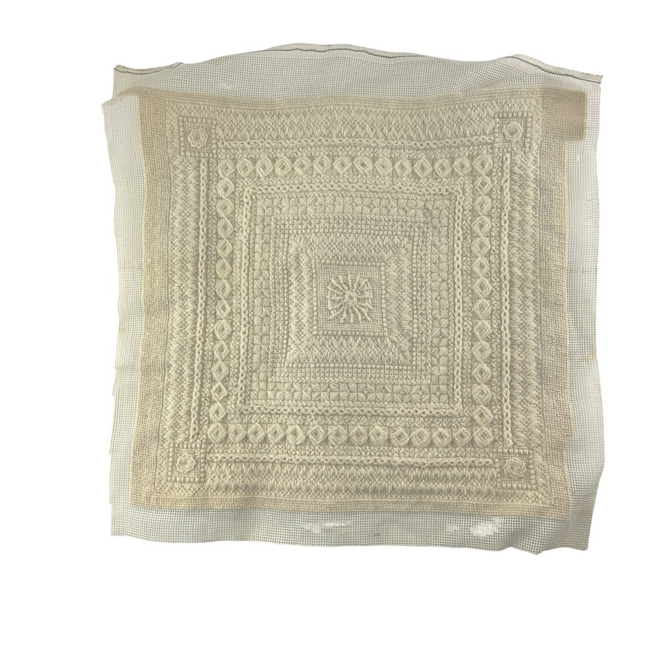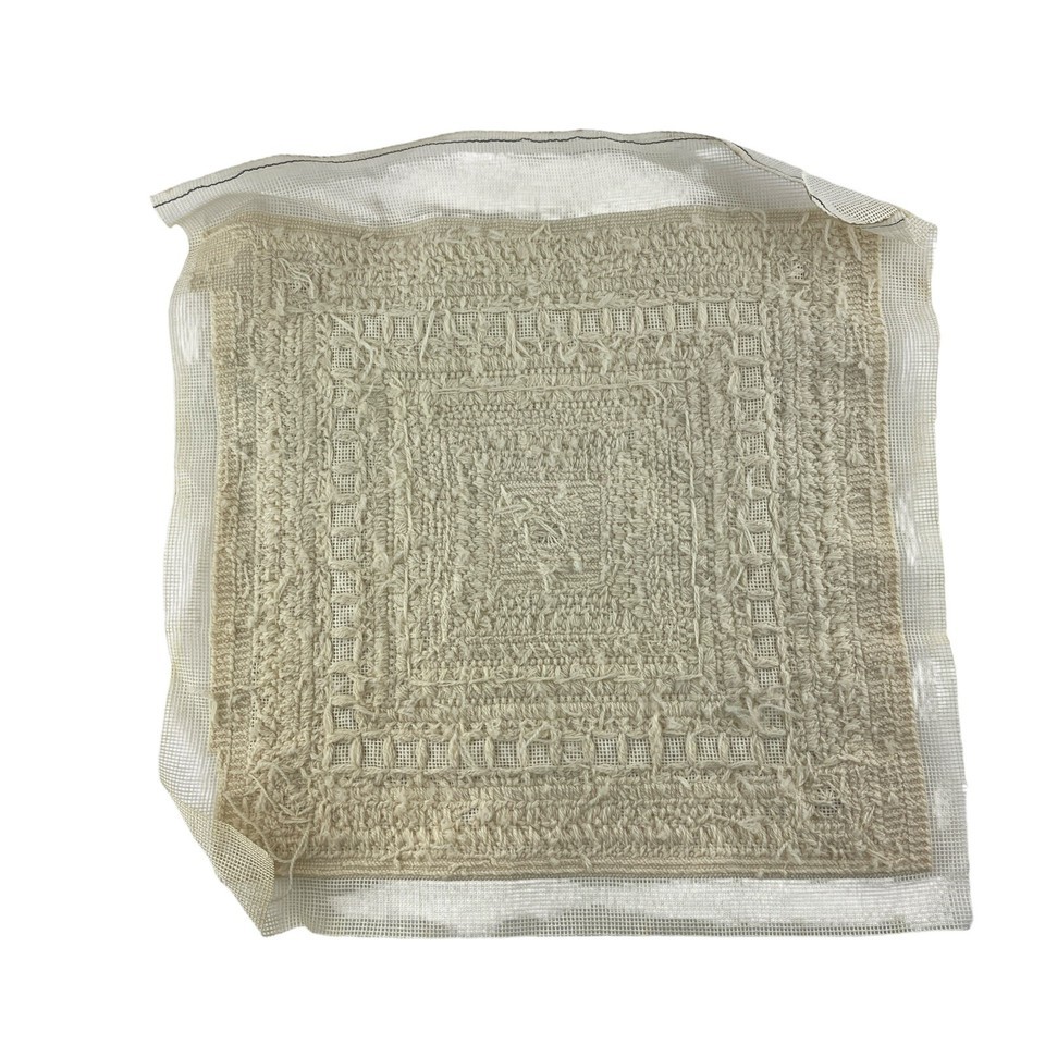 Vintage Needlepoint Pillow Top Raised Embroidery Cream Partially Complete 15x15"