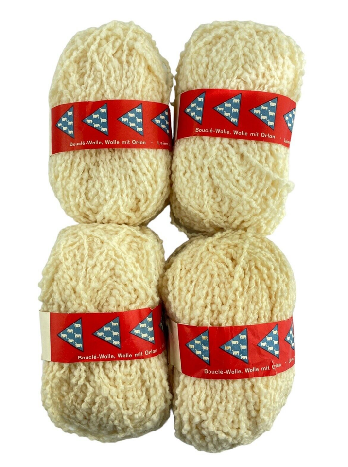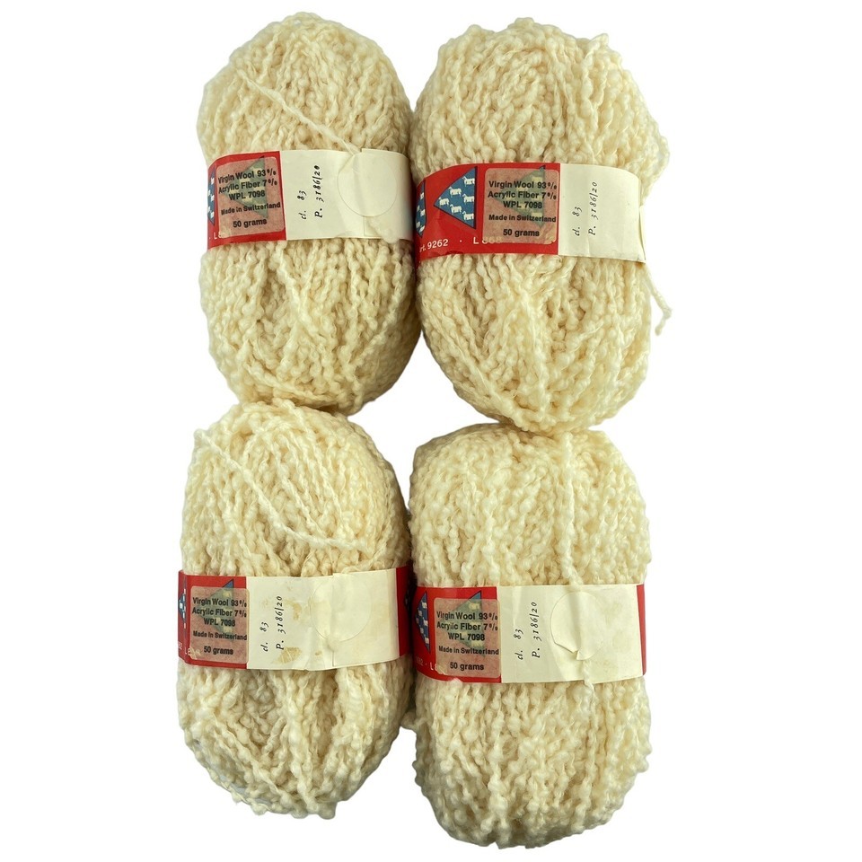 Swiss Wool Yarn Boucle-Wool Cream Color 4 Skeins 50g ea. Wool Acrylic Vintage