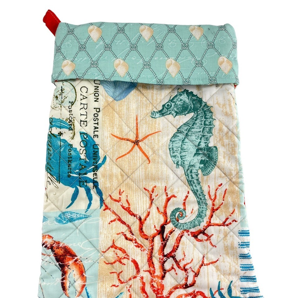 Christmas Stocking Quilted Coastal Beach Ocean Nautical Seahorse Shells